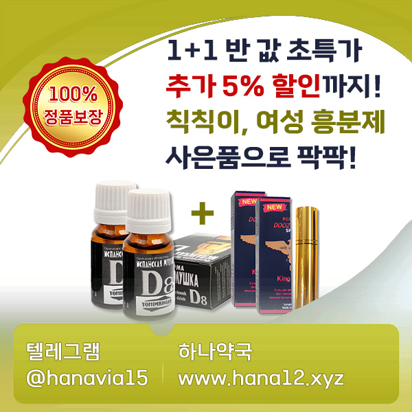 ✅하나약국????에서는 현재 정말 혜택이 좋은 1+1 반 값 특가 이벤트를 열심히 진행 중입니다! 이 이벤트는 비아그라, 구구정 20mg, 남성 지연 스프레이를 비롯한 모든 제품에 적용되며, 고객님들이 더 저렴한 가격으로 원하는 제품을 구매할 수 있도록 지원합니다. 예를 들어, 구구정 20mg 16정+16정은 1+1 반값 세일로 저렴하게 구매하실 수 있으며, 남성 지연 스프레이도 1+1 혜택으로 구매하실 수 있습니다. 이 외에도 추가로 5% 더 할인하는 특별 혜택까지 제공하여, 실용적인 지출로 큰 효과를 누릴 수 있습니다. 또한, 구매하시는 모든 고객님에게 사은품으로 칙칙이와 여성흥분제를 증정해 드리니, 혼자만이 아닌 연인과 함께 즐거운 시간을 보낼 수 있도록 지원합니다. 천사약국 하나약국 허브밍의 마음을 담은 이 사은품은 여러분의 관계를 한층 더 화끈하게 만들어 줄 것입니다.